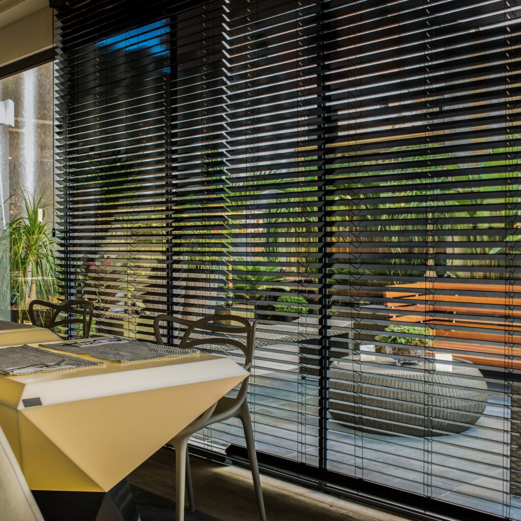 As Persianas Horizontais combinam elegância e funcionalidade. Com lâminas de diversos materiais — alumínio, PVC e madeira natural ou sintética — elas permitem o ajuste da luz com precisão, além de complementar a decoração com visual sofisticado